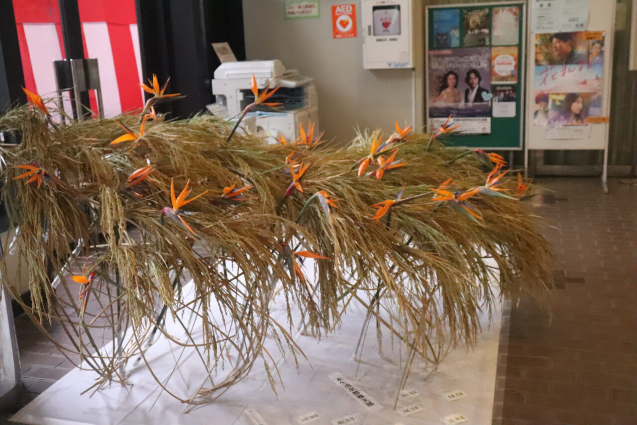 長岡京市中央公民館の会場での作品展示もあり、入り口付近は秋の装いとなっていました。