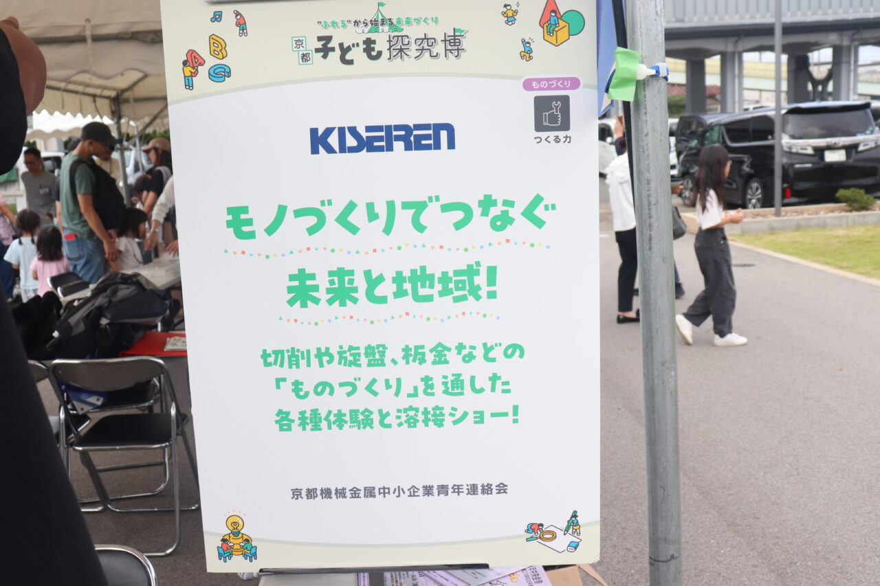秋晴れの中、大山崎にあるアート&テクノロジー・ヴィレッジ京都で「京都子ども探究博」が開催されましたので、2025年10月19日に行ってきました。京都機械金属中小企業青年連絡会のブースでは、フリーゾーンを含めて6つの体験ができるコーナーがありました。「モノづくりでつなぐ未来と地球」と題して京都府内の会員さんでどんな体験にするか決めたそうです。メッキブースが珍しく、人気とのことで整理券を配り時間ごとに体験します。自分の好きなものを見つけ、「なぜ?」という問いを育てるプログラムになっています。