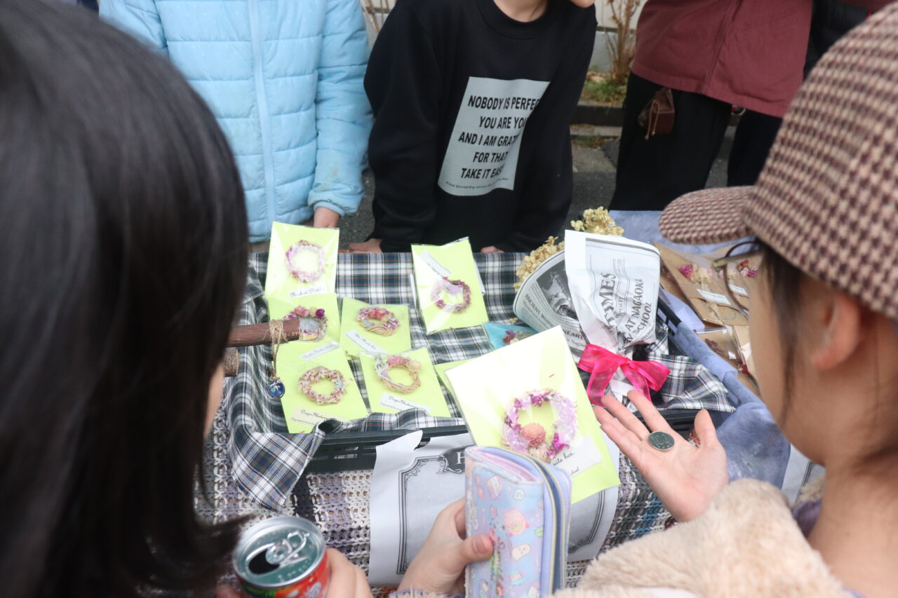 ひまわり学級の「ひまわりショップ」では自分たちで育てたお花を商品化しようとお花を育てるところからはじめ、得意なことを生かして手作りでリースやブーケをつくっていました。授業の一環で日常生活の結びつきを体感する総合的な力をつける成果発表となったようです。それぞれが楽しみ、地域とのつながりを感じた一日となったようでした。取材、撮影にご協力いただきありがとうございました。