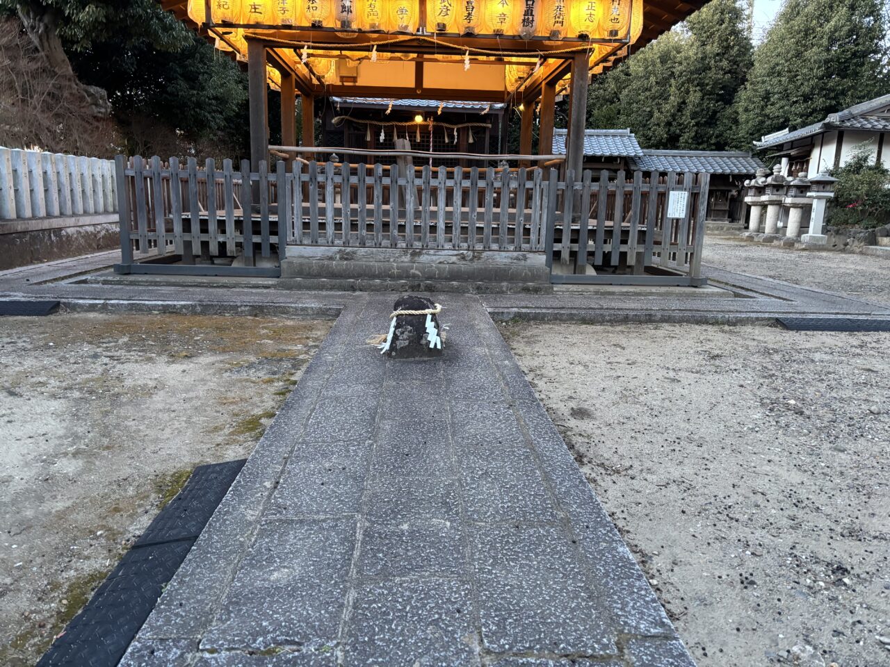 夕方だったため提灯もついており厳かな雰囲気です。火雷神は文字通り「雷神」だそうで、雷は大量の雨を降らせて地上を潤し、農作物を育む恩恵を持ち合わせます。この近くに畑が多く野菜作りが盛んなのもうなずけますね。
