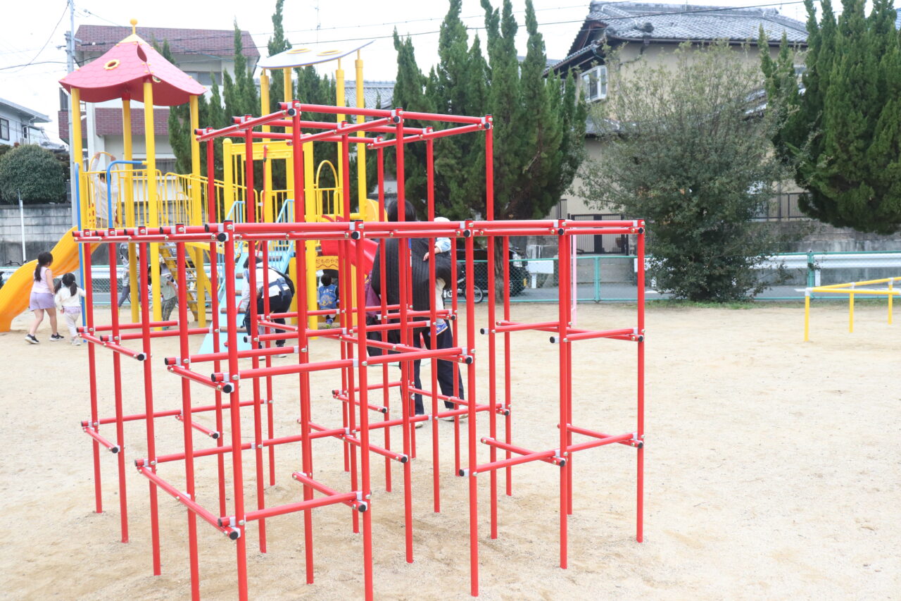 のぼったり降りたりが楽しい遊具は黄色を基調としていて、元気がもらえる色でさらに活発に遊べているようです。